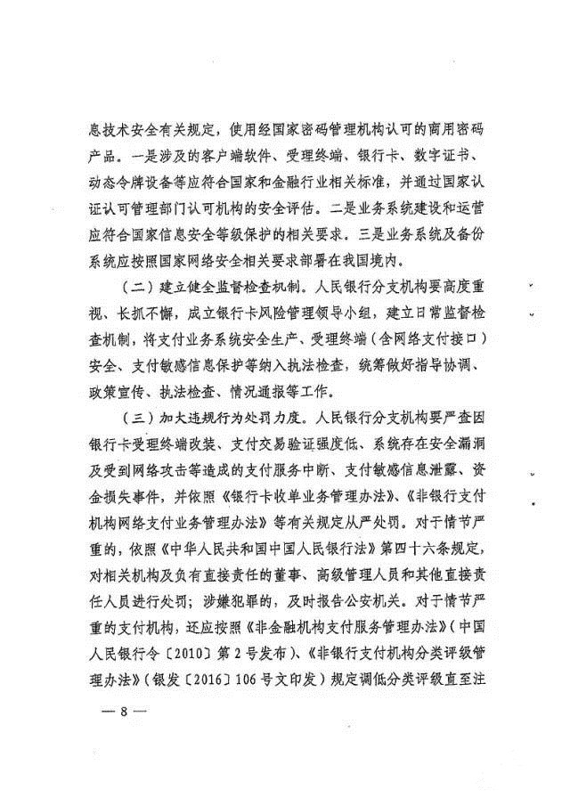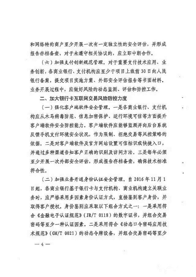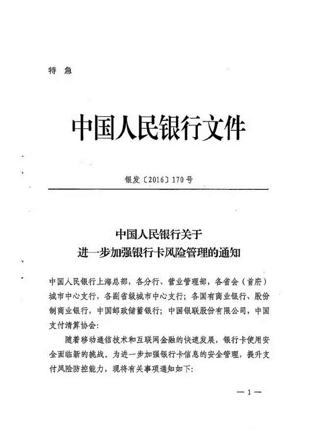 央行下发特急通知央行《中国人民银行关于进一步加强银行卡风险管理的通知》 ,给各机构 ,此次通知主要在面对移动通信技术和移动金融迅速发展的情况下 ,银行卡支付安全方面面临着新的挑战 ,央行此次文件覆盖的内容较全面的对参与银行卡支付产业各机构给出比较明确的管控指导方向!